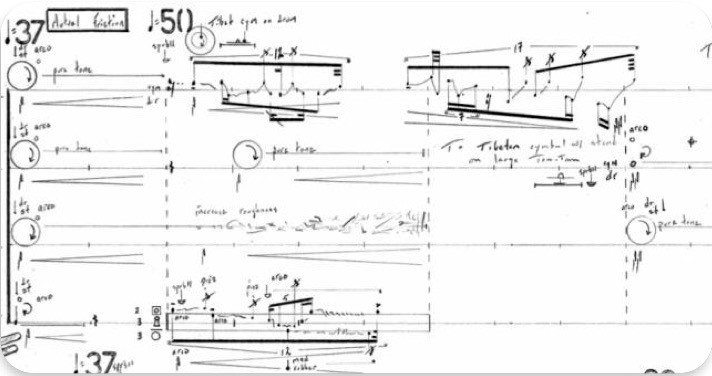 In these sections, Superfluidity is represented by arco-rub on handheld cymbals, while normal fluid is portrayed by pizz and arco production within their corresponding multipercussion setups (see fig. 22 and sound 10).