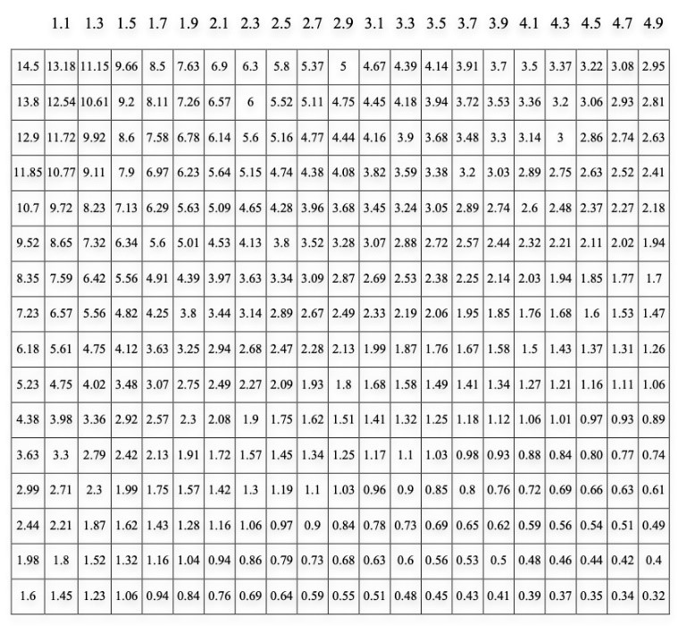 How did I translate numbers into rhythm? Below I show one example. It was important for me that the process allowed for intuition and not mechanical reproduction. If we look at table one, I chose to interpret the matrix beginning with a descending series (not inversion in the classical 12-tone matrix)(Scheonberg 1995) at 4.14 moving to 3.94, then to 3.68, etc. Then to interpret each number sequence, I followed the general process: